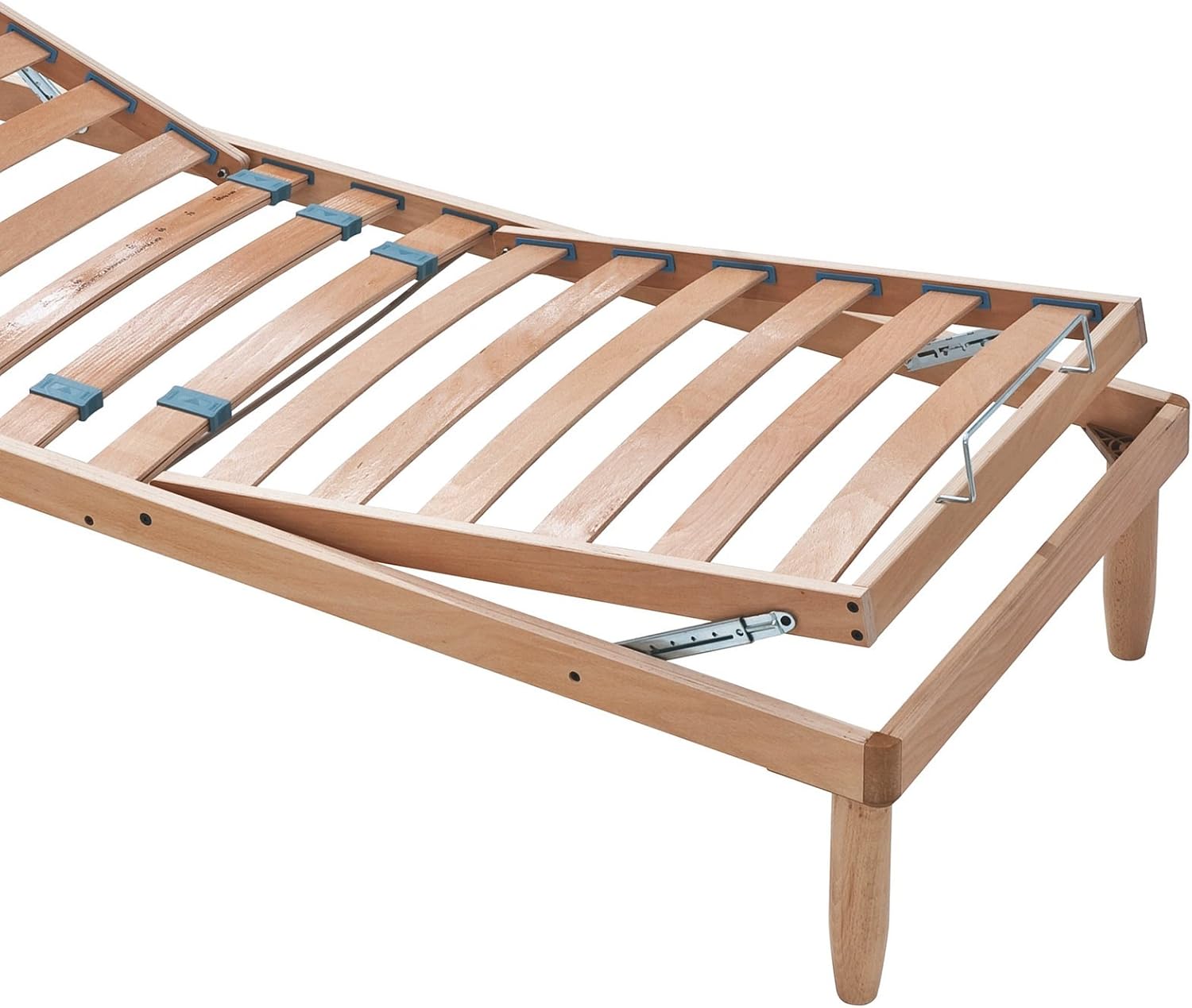Il sistema di bloccaggio del meccanismo per alza testa e alza piedi è assai resistente. Migliora la circolazione sanguigna. Rete letto reclinabile manuale alzatestaalzapiedi con doghe.